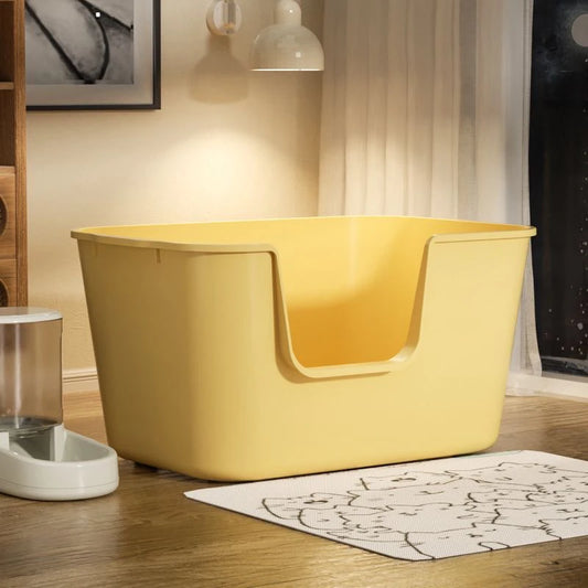Huge Yellow Cat Litter Box Oversized Semi-Closed Cat Litter Box Splash-Proof Large Cat Toilet